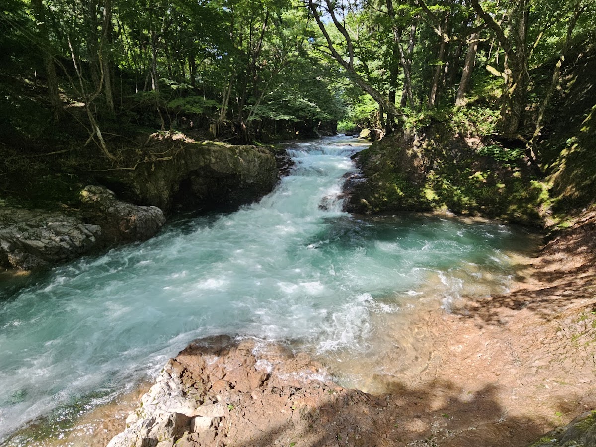 渓谷の水の色が驚くほど鮮やかな青緑で、晴れた日の午前中に光が差し込むと川底まで透き通って見える。新緑の5月と紅葉の10〜11月が特に美しいが、夏の濃い緑の中で光る水の色も別格だ。角館から近いため、武家屋敷観光とセットで組み込みやすい。