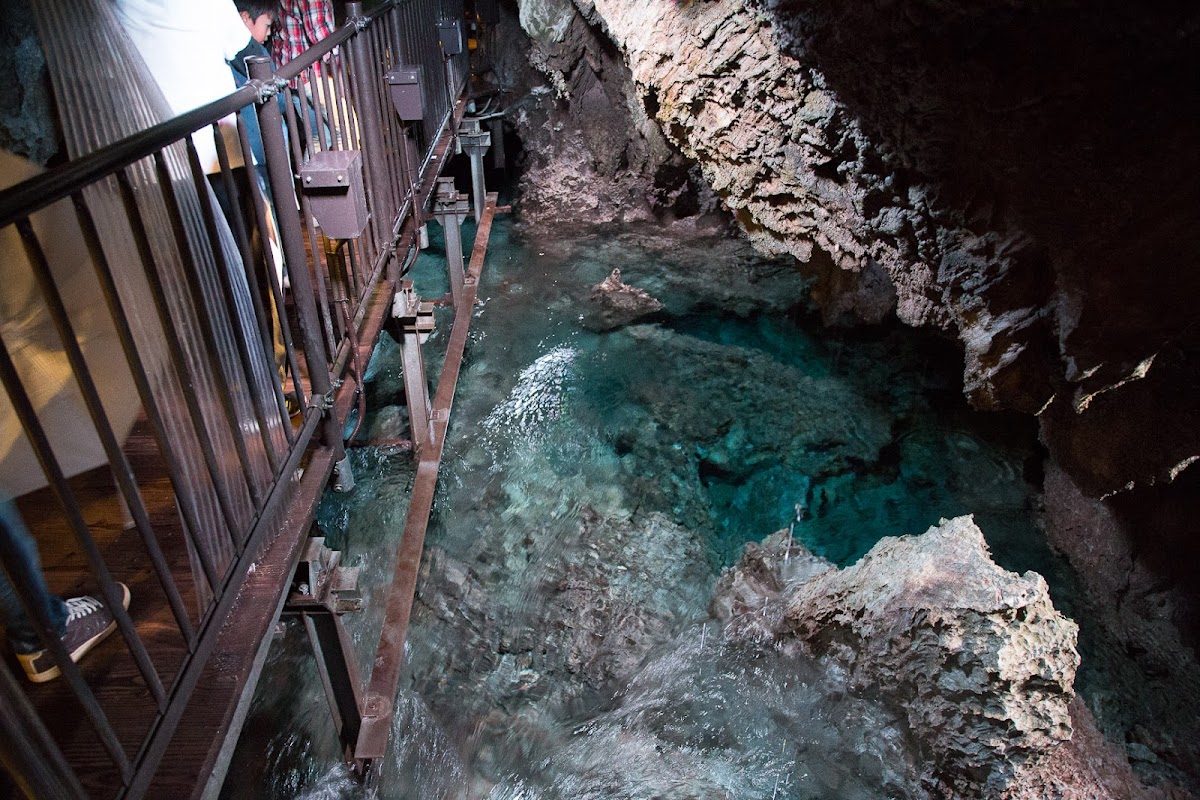 岩手県岩泉町にある日本三大鍾乳洞のひとつで、地底湖の水の青さが世界でも最高レベルの透明度を誇る。水深98mの第3地底湖に照明が当たると、吸い込まれるような深い青のグラデーションが広がる。