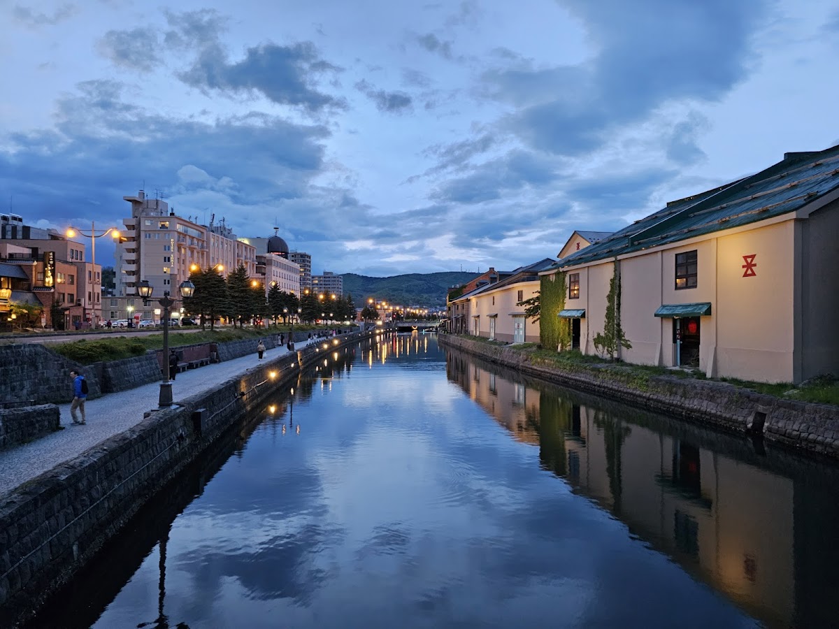 明治末期から大正にかけて荷物の積み下ろし拠点として掘削された全長1,140mの運河で、石造りの倉庫群が両岸に連なる小樽観光の象徴です。