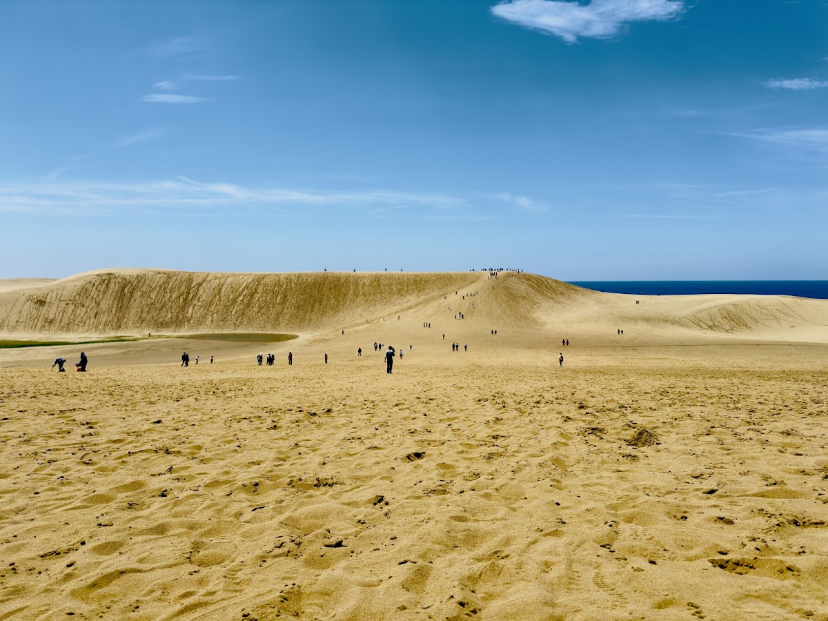 風が砂の上に描く「風紋」と呼ばれる模様は時間ごとに変わり、同じ景色が二度と存在しない自然のアート。馬の背と呼ばれる砂丘の尾根からの眺望は、目の前に日本海が広がる圧巻の絶景です。砂丘の中で迷子になるような広さと開放感は、実際に来てみて初めて実感できます。